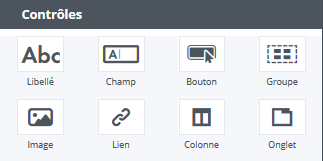 Cette barre d'outils contient les contrôles que vous pouvez ajouter à la page, voir Détail des contrôles.